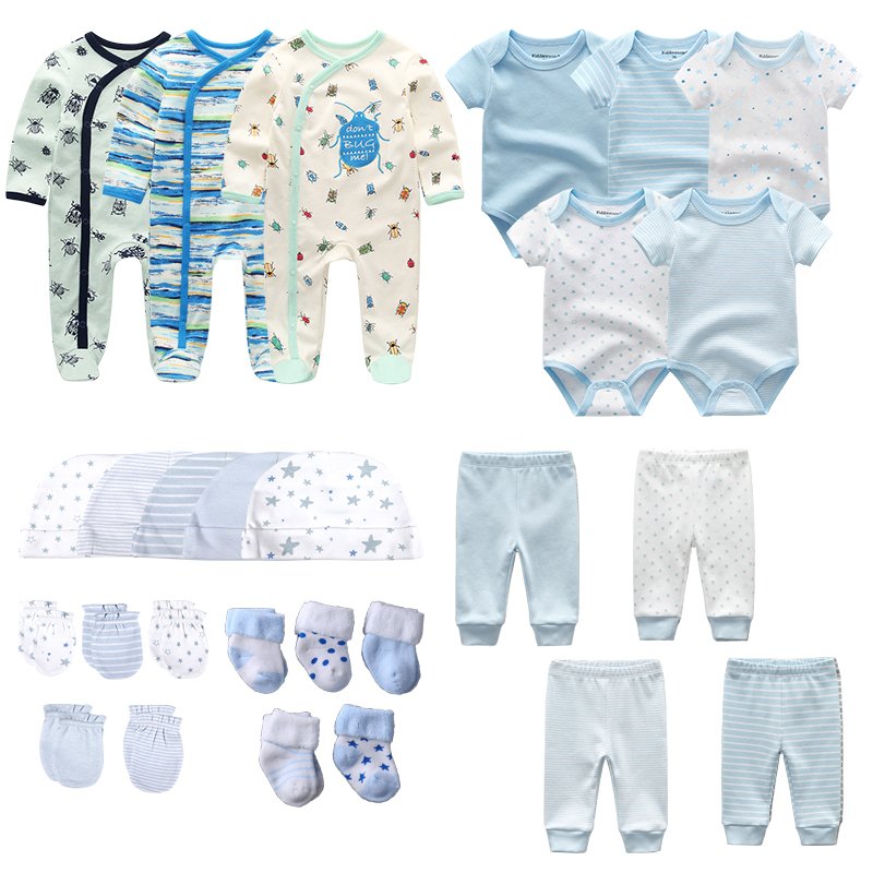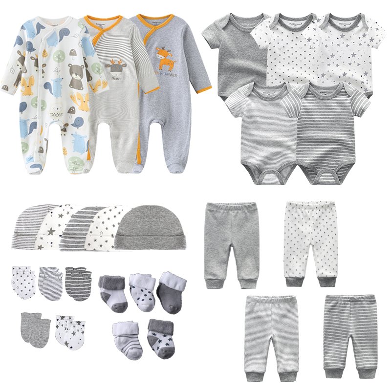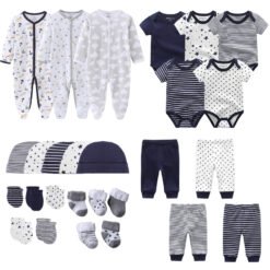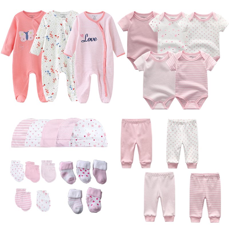 0-3-6 Months Newborn Girl Pink Set 27Pcs Rompers Bodysuits Pants Hat Gloves Socks Baby Boy Cotton Clothes Suit Infant Birth Gift
