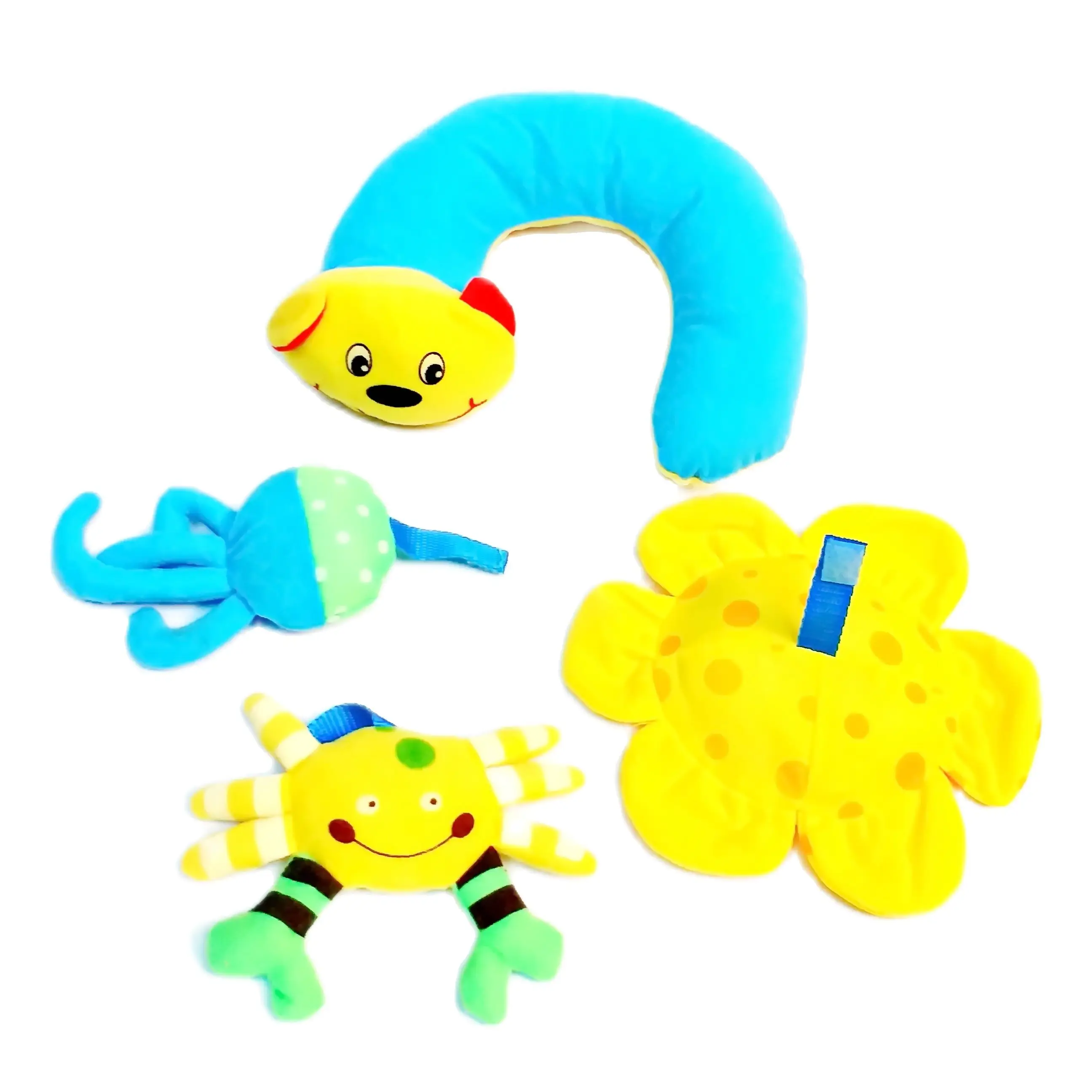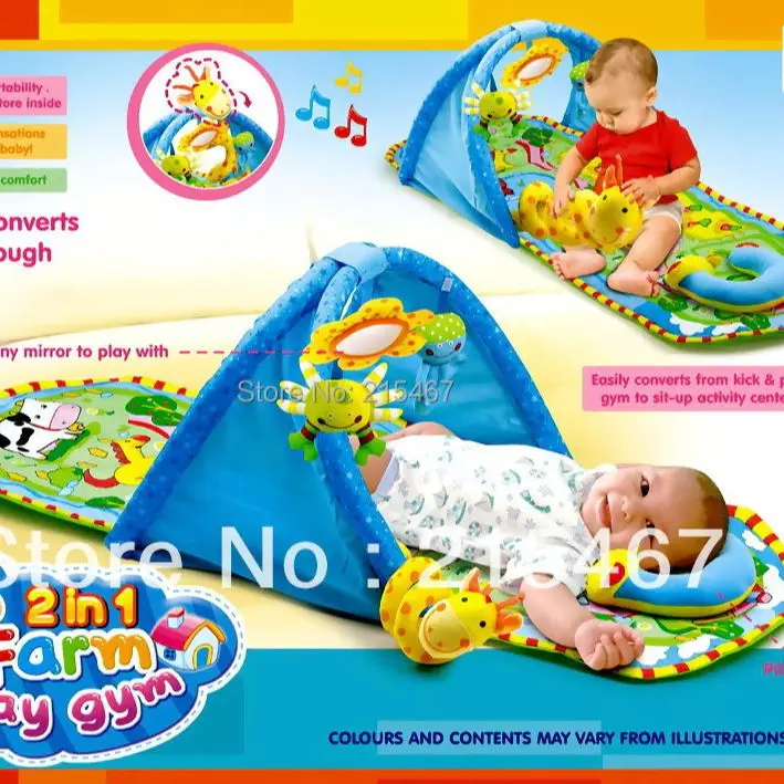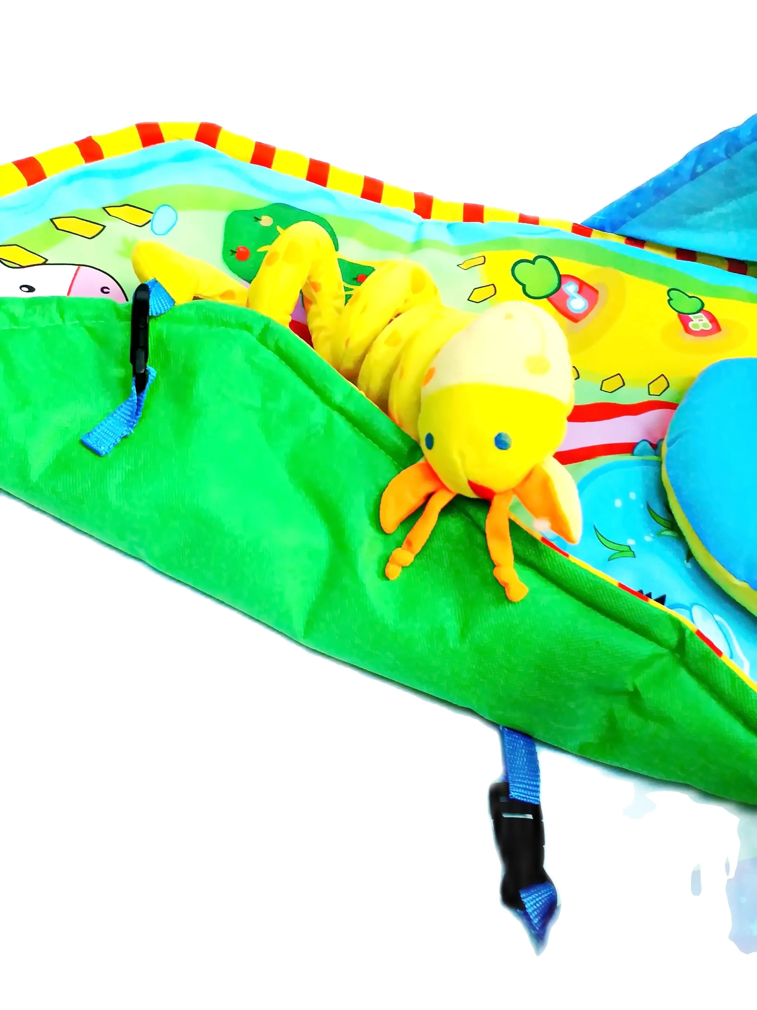 Our baby gym mat can 5 different modes of play: Lying, Sitting, Tummy Time, as well as Play & Take-Along. in order to improve kids ability such as listening, grabing, kicking, playing.