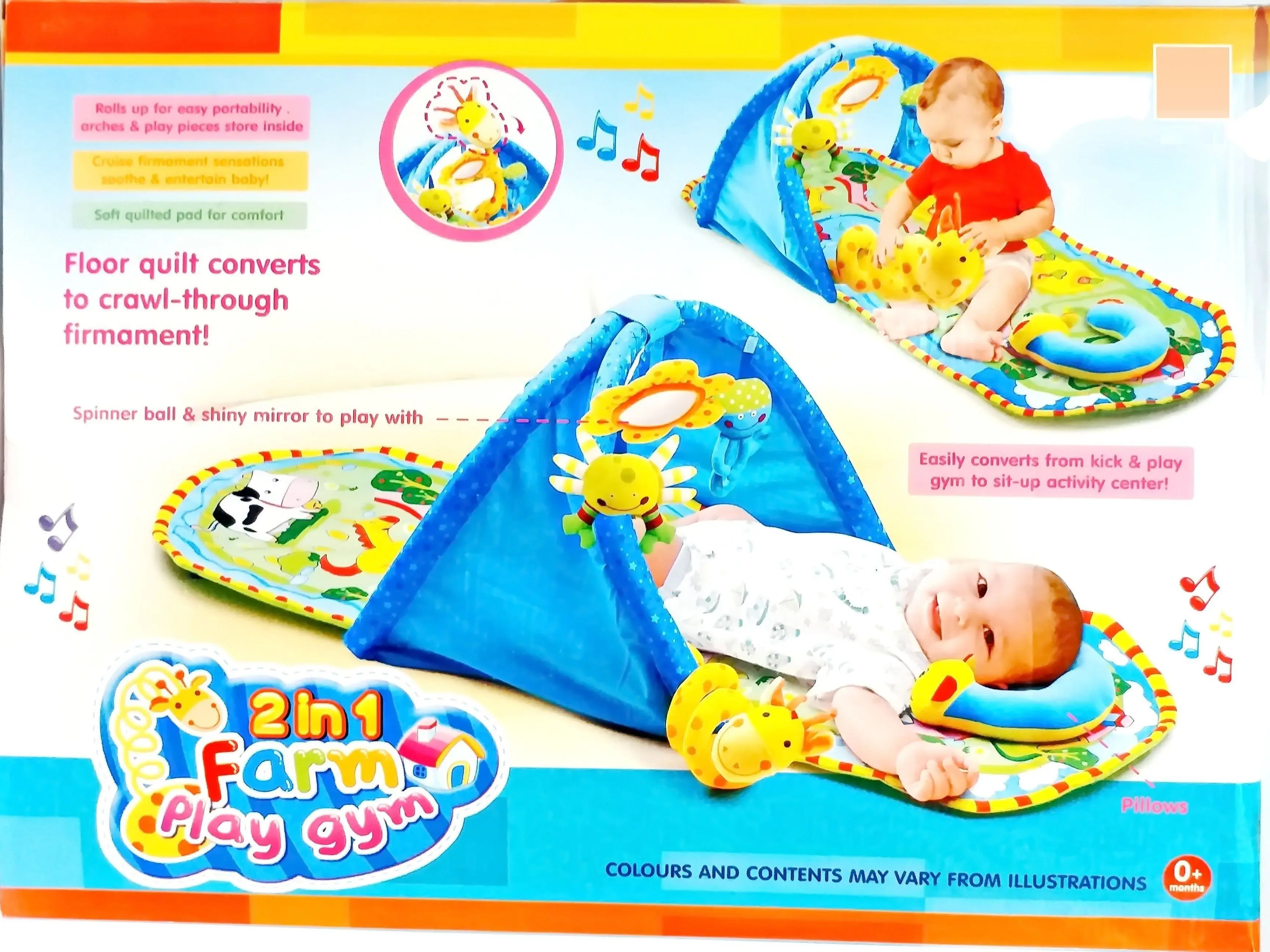 The arch bridge and gym mat are removed easily, smooth surface is edgeless, floor mat can easily be folded up when it is taken outdoors or even for traveling. Baby can play around like lying, sitting and sprawling, so that the parents can enjoy the playful time with their babies. It also can be a smart choice as a Baby Shower, Christmas, or Birthday gift.