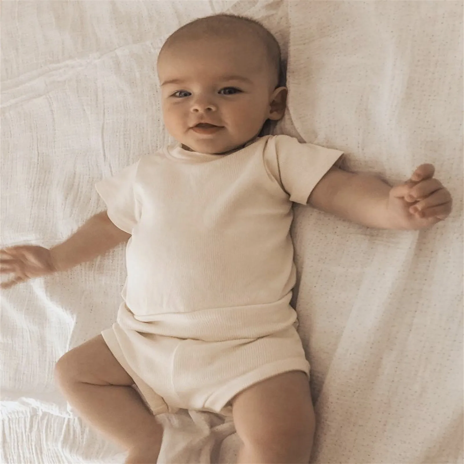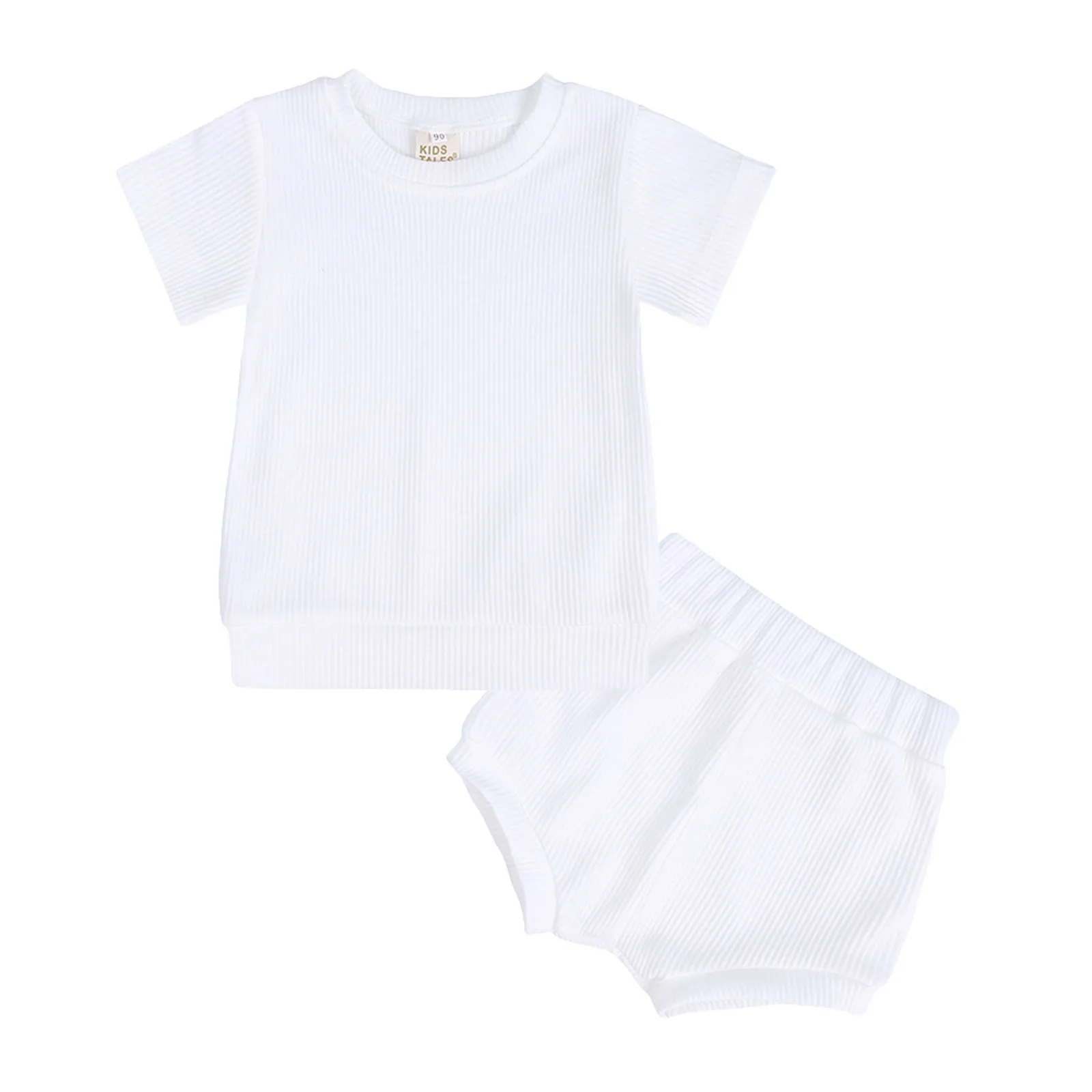 Toddlers Kids Girls Boys Cute Ribber Soild Short Sleeve Top Short Pants Infant 2pcs Pajamas Sleepwear Outfits Set